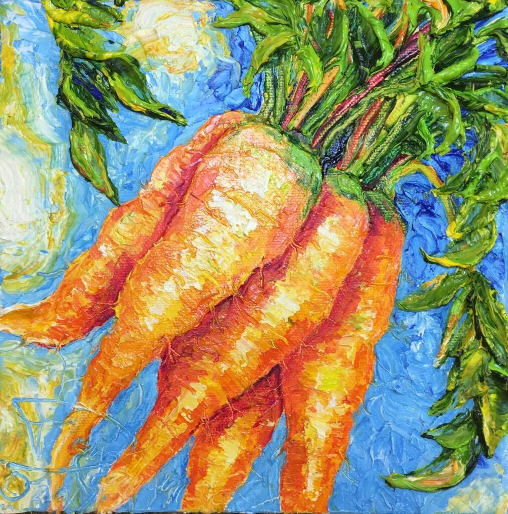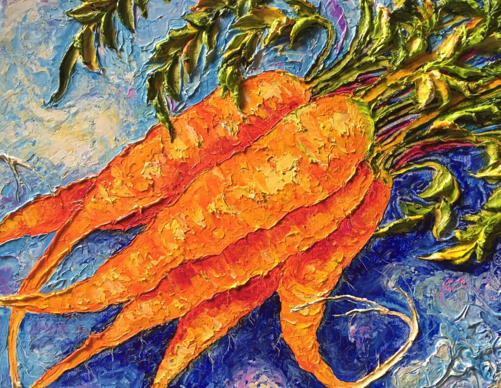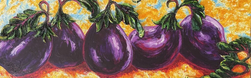 Original works exploring the bold hues and distinctive character of produce, ingredients, and other kitchen subjects.